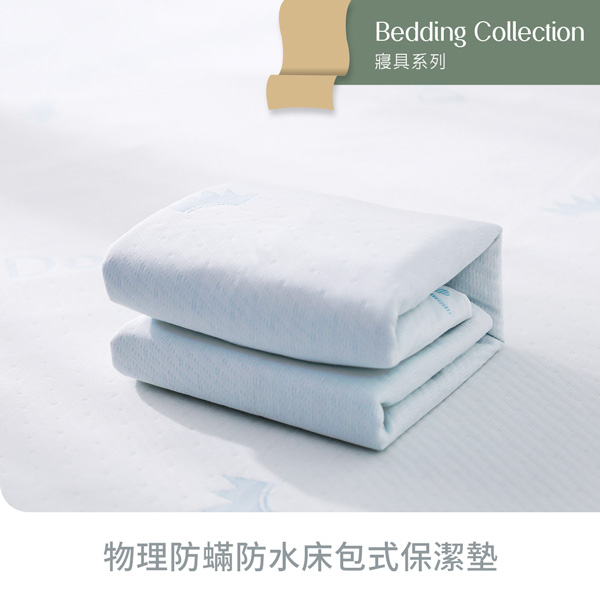 Advanta™科技防水薄膜,隔絕髒污不外漏物理防蟎利用表面超微孔隙,攔阻塵蟎床包式設計,不易滑脫,可包覆35cm床墊