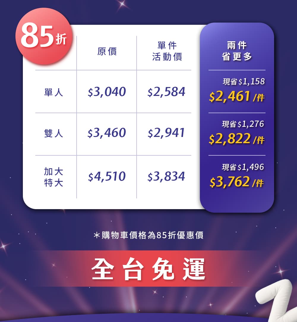 全館85折/指定組合8折 狂購床墊寢具讓你睡翻每夜