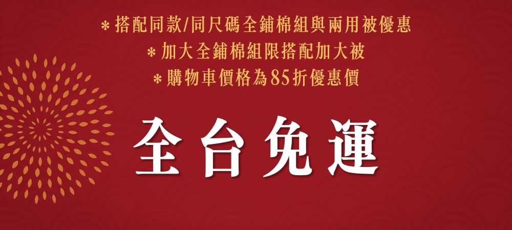全鋪棉床包組因體積較大,限單人、雙人、加大開放超取。