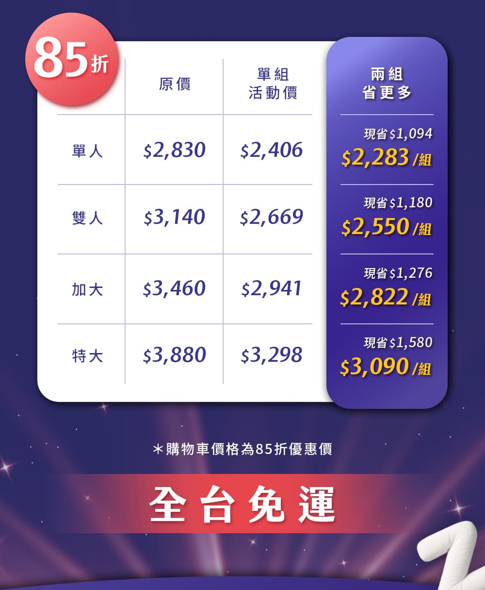 全館85折/指定組合8折 狂購床墊寢具讓你睡翻每夜