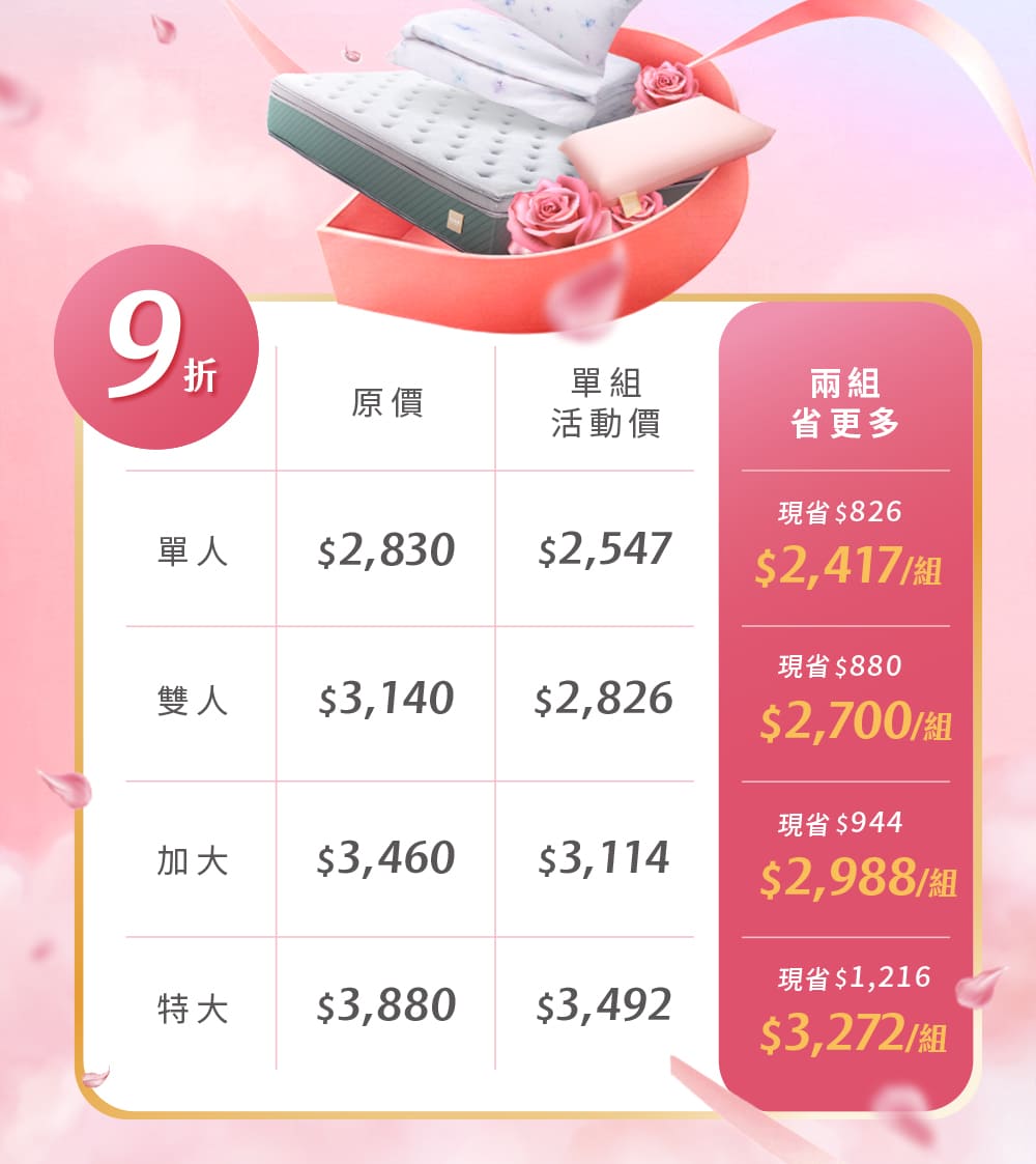 兩組替換省更多(第2款花寢款式請填於備註):