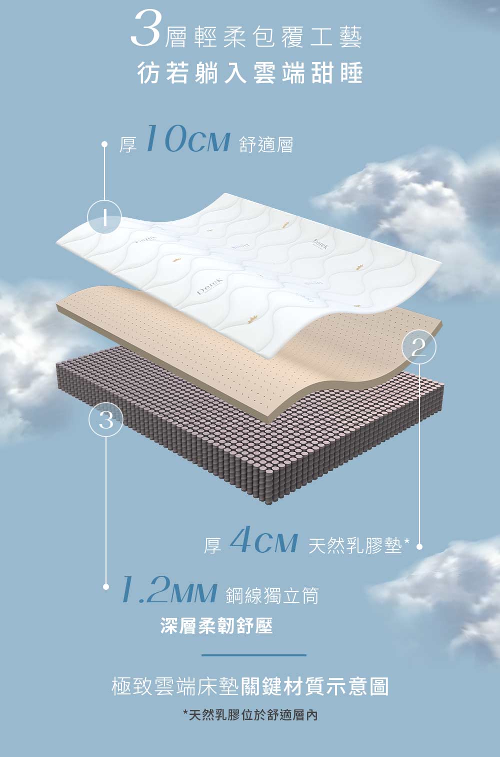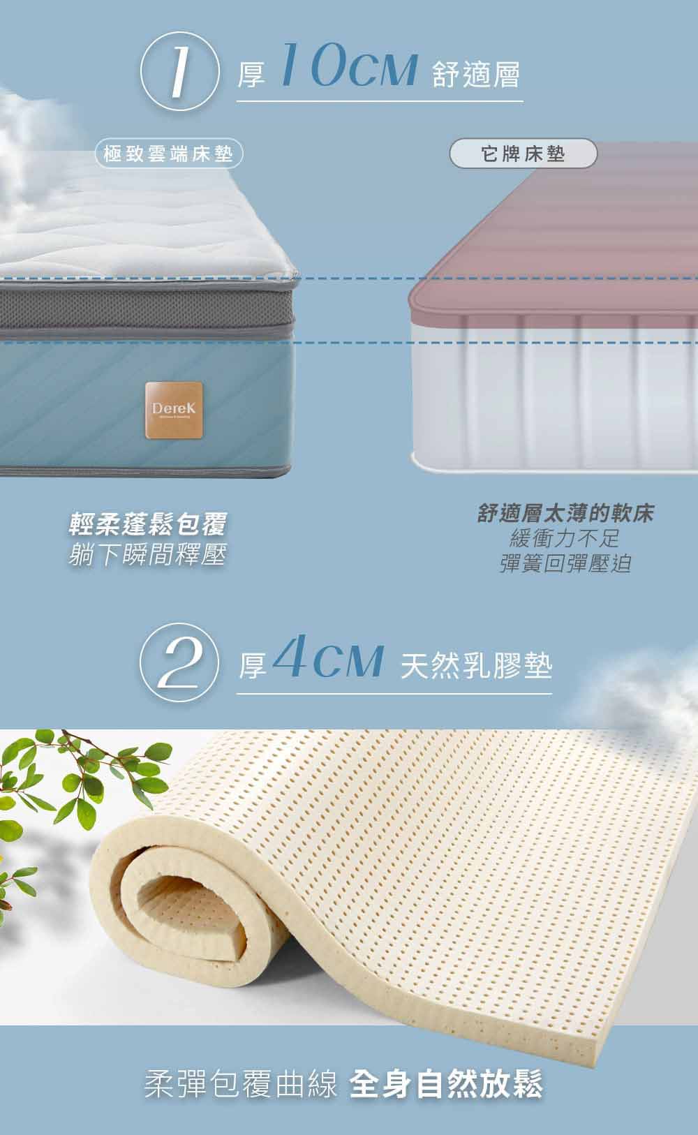 極致雲端床墊─給喜愛偏軟床放鬆感的你,柔韌支撐不受打擾